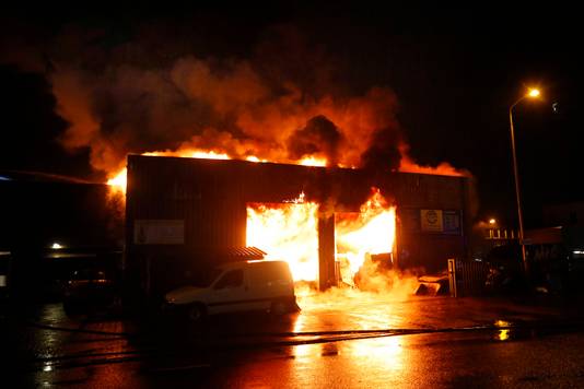 Op een industrieterrein in eindhoven woedt een grote brand.